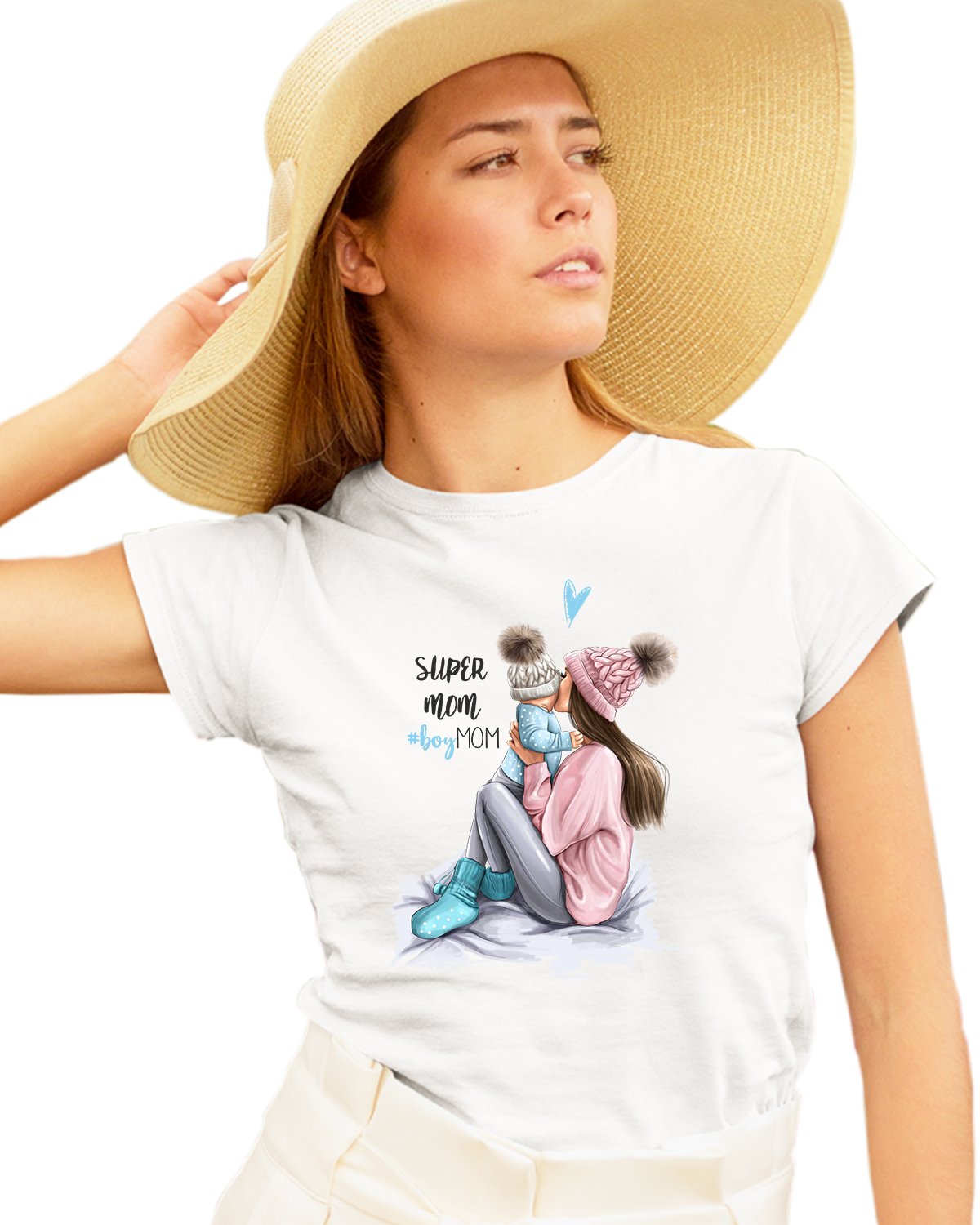 Дамска тениска MOM of BOY е едно от нашите изкушения и вярваме, че дизайнът на блузата успява да докосне сърцата на огромен процент от майките и да ги накара да се замислят колко щастливи са те в действителност. Ние сътворихме за вас този модел с няколко опции, от които да се възползвате. Имате възможността да избирате дали майката да бъде с тъмна или светла коса, в зависимост от това как изглеждате вие самите.