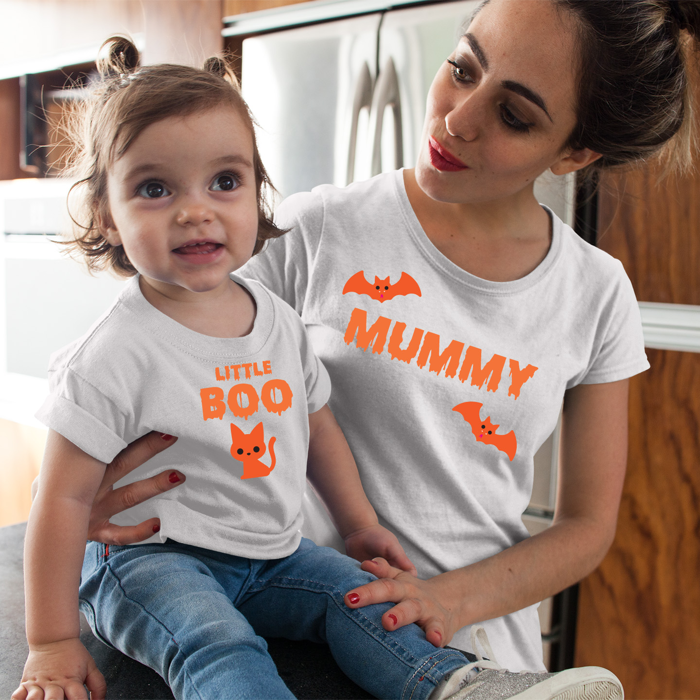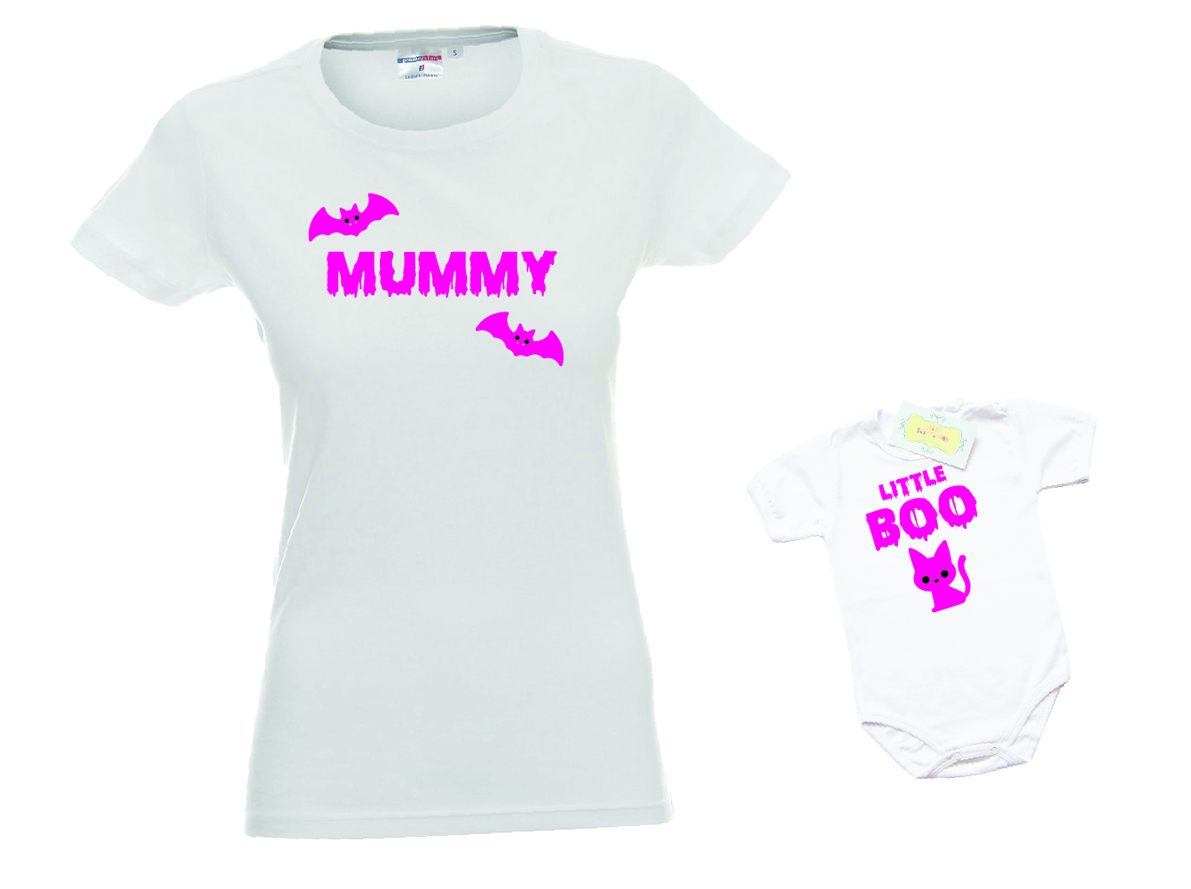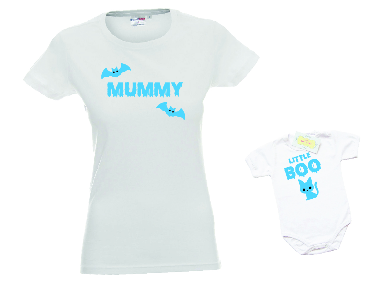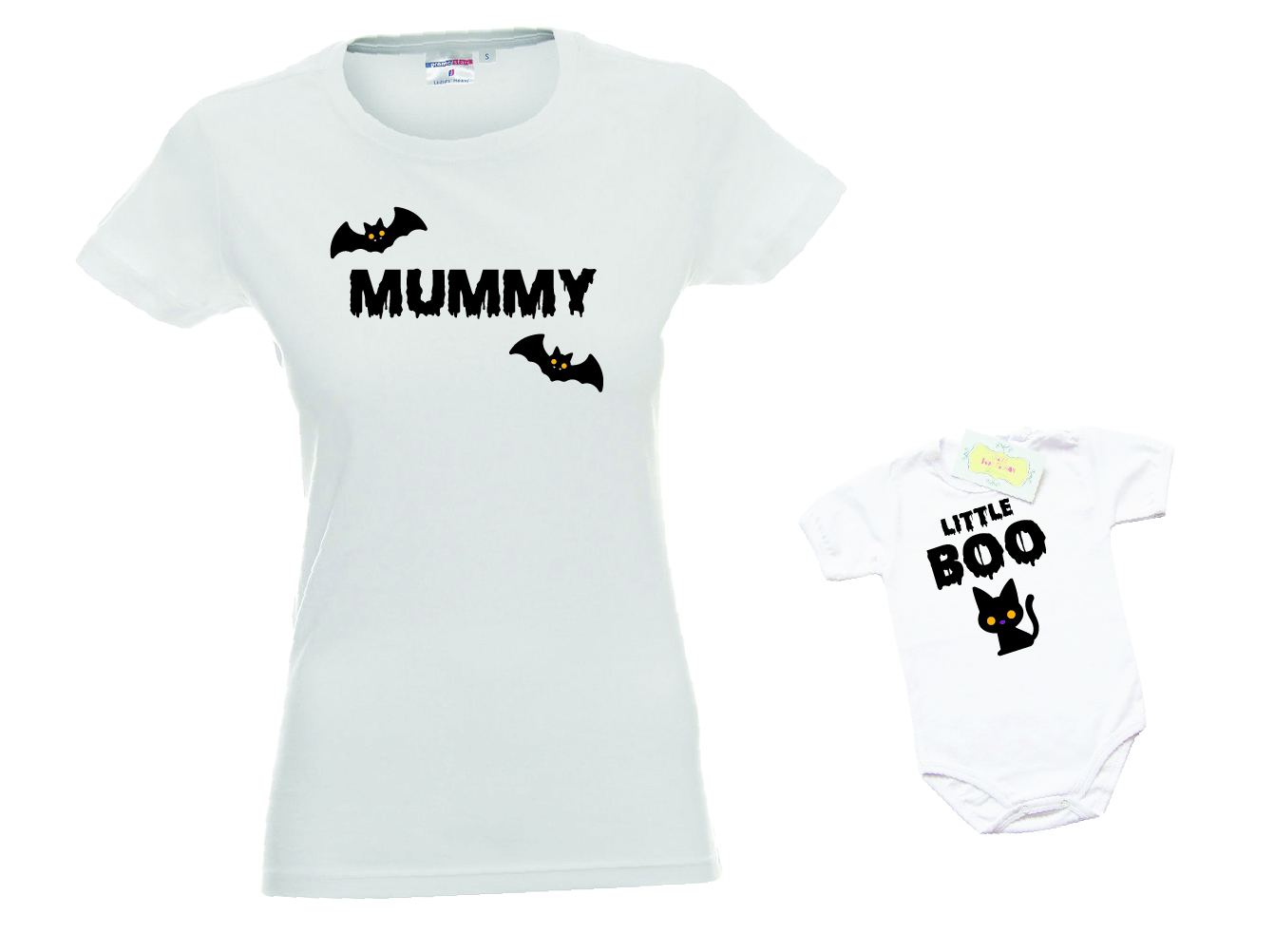 Този празничен комплект включва тениска за мама и боди за бебе, подходящи за мъничета на възраст от 0 до 30 месеца. И двете части са изработени от мека и удобна материя, която осигурява свобода на движение и комфорт през целия ден. Щампата с Хелоуин мотиви добавя празнично настроение и ще Ви донесе много усмивки.